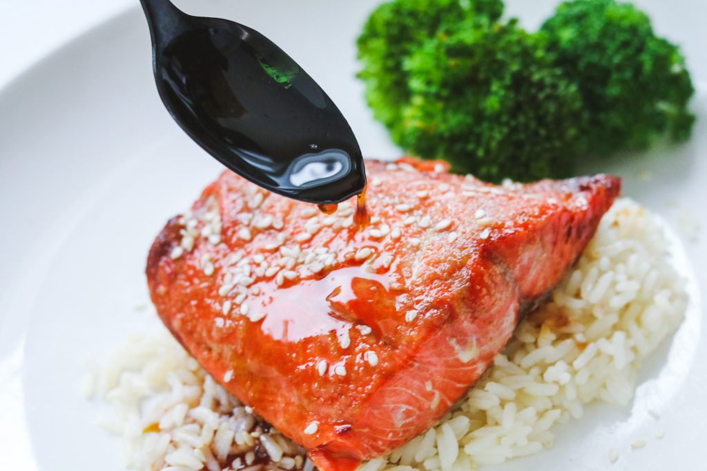 Mix all ingredients together. Marinate salmon in honey glaze for 30 minutes. Drizzle remaining sauce over salmon while cooking for extra flavorful and moist salmon.